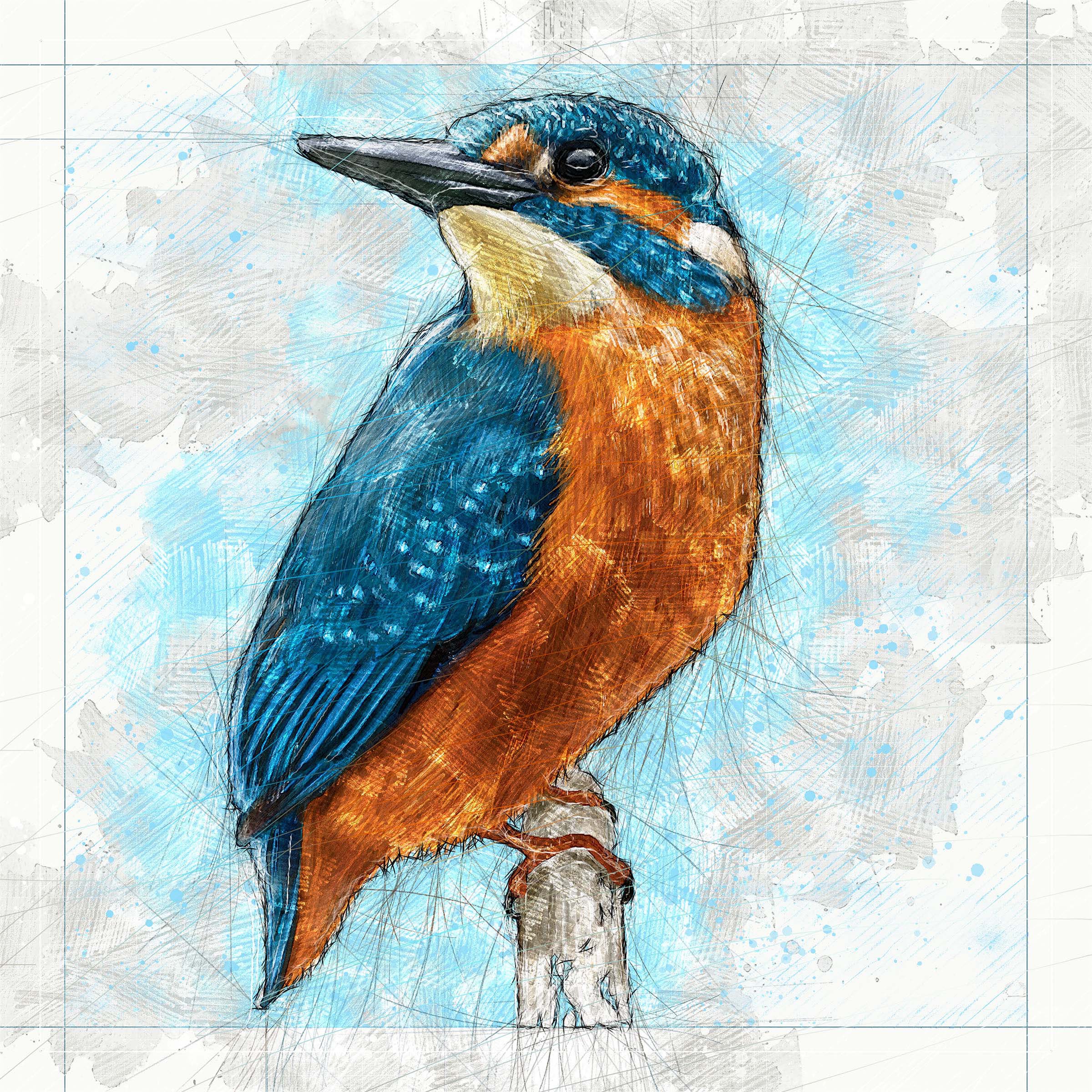 Hawk vintage bird – Colour Sketch in wooden Frame