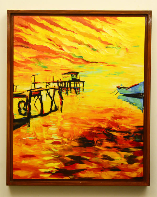 | Digital Embellished Painting of river deck | Digital Embellished Painting of river deck arrives ready to hang, with hanging accessories included and no additional framing required. |